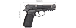 SPECIFICATIONS: OPERATION: SPRING BUILD: METAL VELOCITY: 265 FPS (w/ 0.12g BBs) MAGAZINE: 13 ROUND CAPACITY HEIGHT: 5.8" LENGTH: 8.2" COLOR: BLACK FEATURES: HIGH QUALITY DURABLE METAL COMPOSITION FULL SIZE REPLICA...