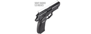 Specifications: Brand: Win Gun Product Construction: Metal Slide / ABS Frame Operation: Gas Non-Blowback Power Source: 12g CO2 Cartridge Firing Modes: Semi-Automatic, Safety Muzzle Velocity: 430 - 480 FPS (w/...