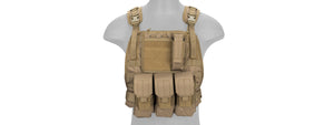 Specifications: Color: Tan Size: Fully Adjustable Material: 1000 Denier Nylon Pals Webbing: Front and Back Shoulder Straps: Adjustable, Padded, Quick Release, 4 D-Rings Waist Waist Strap: Adjustable, Quick Release Magazine...